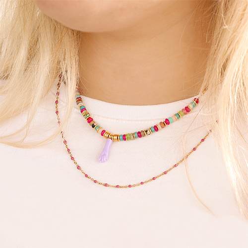 • Stainless Steel - Rostfrei Stahl Schmuckzubehör Gliederkette 1mm Magenta pink-gold