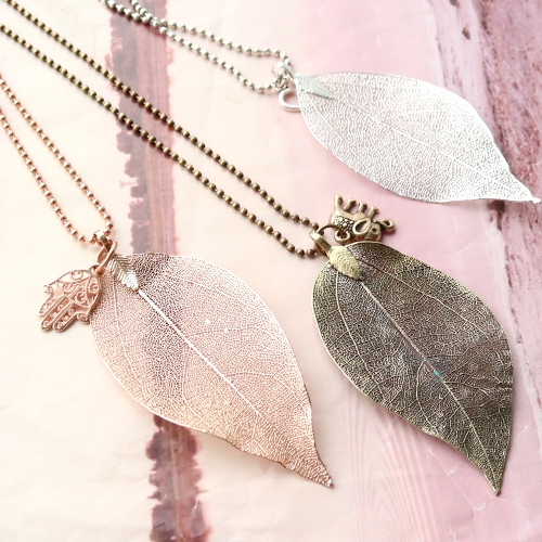 In dieser Serie sind soviel schöne Artikel! Wir zeigen Ihnen, wie Sie sie am Besten kombinieren können! Machen Sie aus diesen hübschen Flaschen schöne Anhänger. Füllen Sie die Flaschen mit schönen Perlen oder Anhängern (nicht grosser als 5mm) oder hängen eine Quaste oder Anhänger dran. Mach aus den Flaschen einen Anhänger indem Sie einen Nietstift oder Kettelstift durch den Korkenverschluss stechen. Das geht am Besen mit einem stabilen RVS Nietstift oder Kettelstift. Befestigen Sie hier die Ballchain oder Jasseron dran und Sie haben eine super schöne Kette! Machen Sie eine lange Kette. Diese lange Kette machen Sie mit einem Blatt Anhänger. Diese Anhänger sind aus echten Blättern gemacht und haben eine Metallbeschichtung. Diese Anhänger sind durch die feine Textur super schick aus.