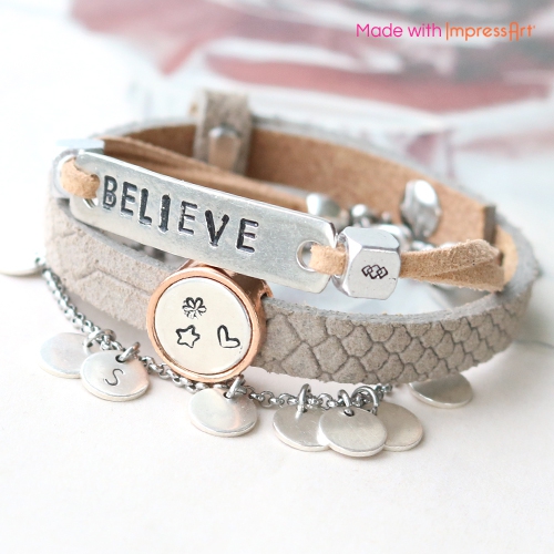 Auch unsere neuen DQ Metall Cabochon sind super in diesem Inspirations Set. Kombinieren Sie sie mit Cuoio Armbanden und DQ Leder. Nehmen Sie noch Cuoio Armbanden dazu, die mit ImpressArt personalisiert sind dazu und Sie haben den allerschönsten Frühjahrsschmuck! Machen Sie endlos viele Kombinationen und seien Sie kreativ, mit ImpressArt ist alles möglich!