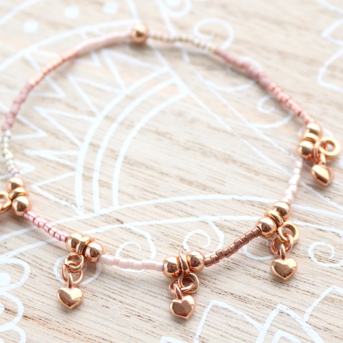 Wir haben zeitlose Inspiration mit neuen Perlen, Anhängern und Zubehör aus DQ Metall gemacht in rosegold. Das Schmuckset ist mit unserem favoriten Reihmaterial gemacht, wie Macramé, gefärbtes Elastik und DQ Leder. Was ist Ihr favorites Schmuckzubehör aus dieser Kollektion? Wir sind ganz hin und weg von den Hamsa Händen, Herzen Anhänger und die Anhänger im Bohemian Stil!